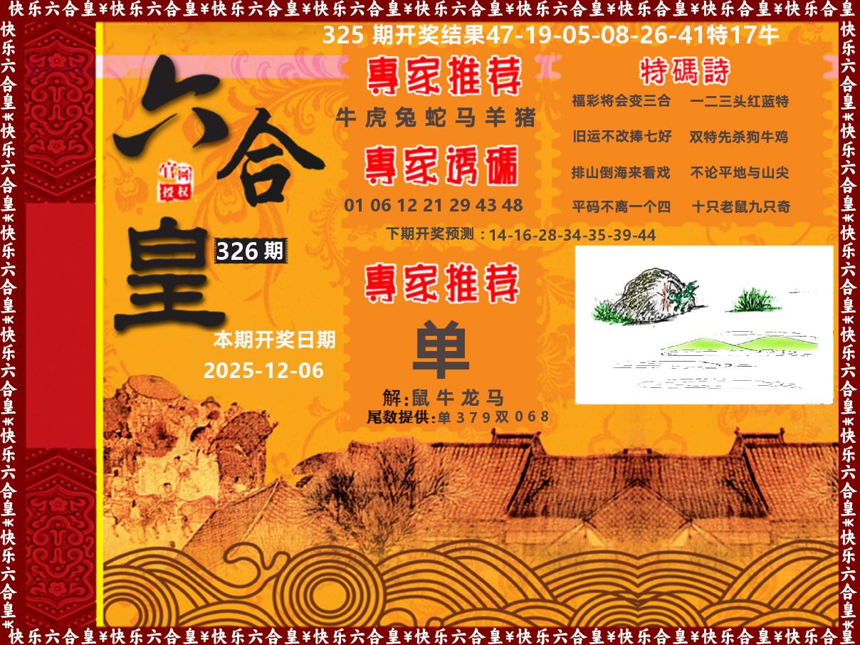 325期:★必中六肖★ 《【牛虎羊鼠狗猴】》开:17牛准